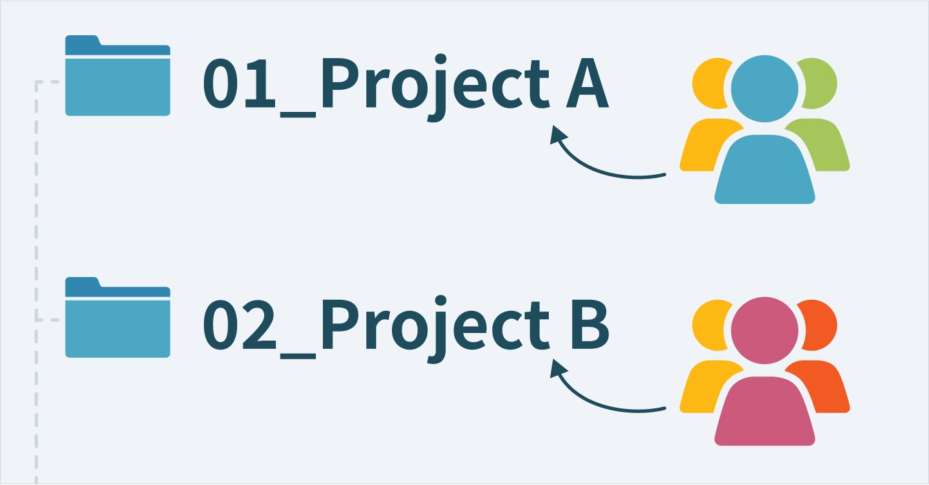 共有フォルダに【共有】などのプレフィックスを付与しておくことで、共有フォルダかどうかがわかりやすく管理が容易になります。