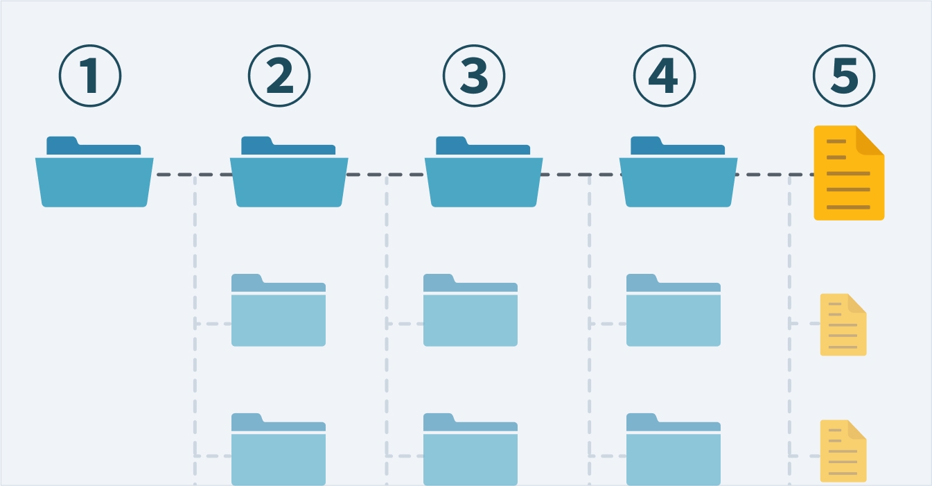 まず、フォルダの階層については深くても5階層までとして管理をしましょう。