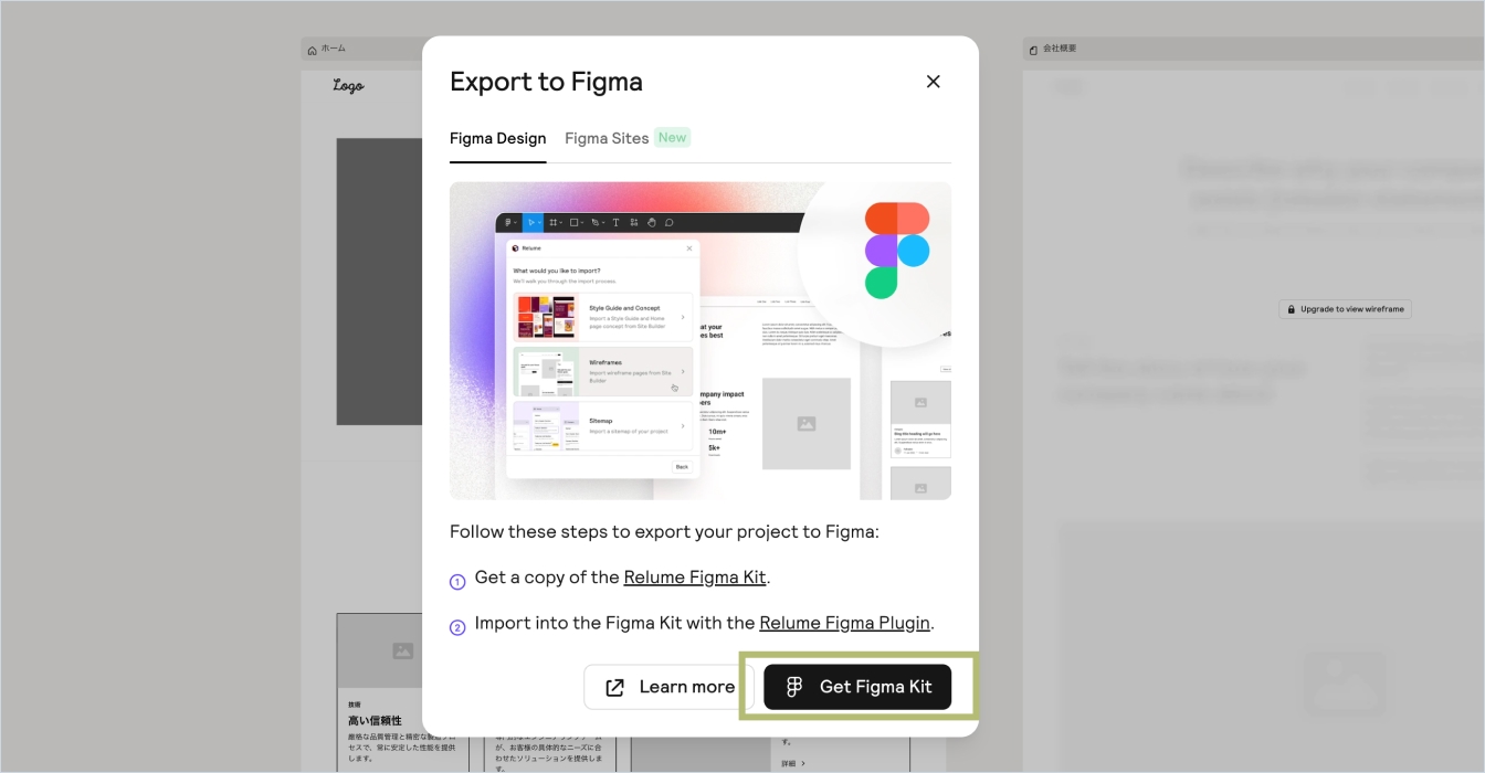 「Relume Figma Kit」をクリックするとfigmaのライブラリ画面にリンクしますのでここからキットを使用します。(figmaアカウントへのログインが必要です)