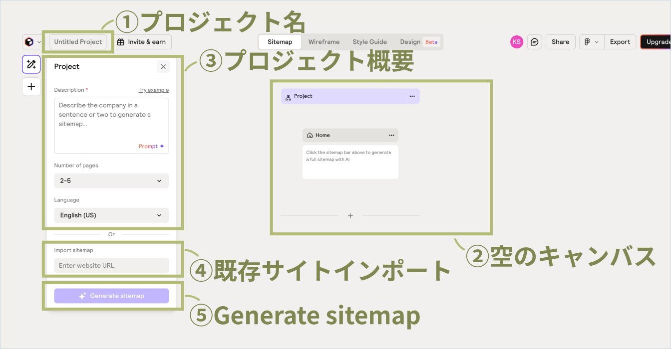 今回はサイト構成/ワイヤーフレームの出力にフォーカスしましたが、スタイルガイドやデザイン作成(Beta版)まで可能な幅広いツールです。