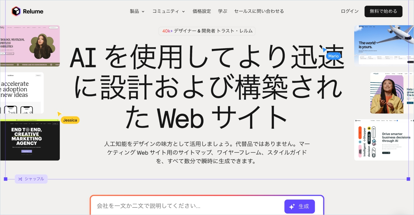 Relume(リリューム)は、そうした曖昧な部分をAIが仮に埋めてくれるため、まず“形”を出すことができます。