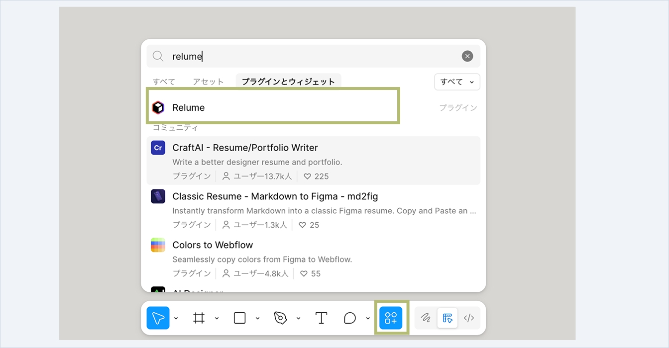 プラグインについてはアクションボタン等からRelumeなどで検索をかけるとヒットします。